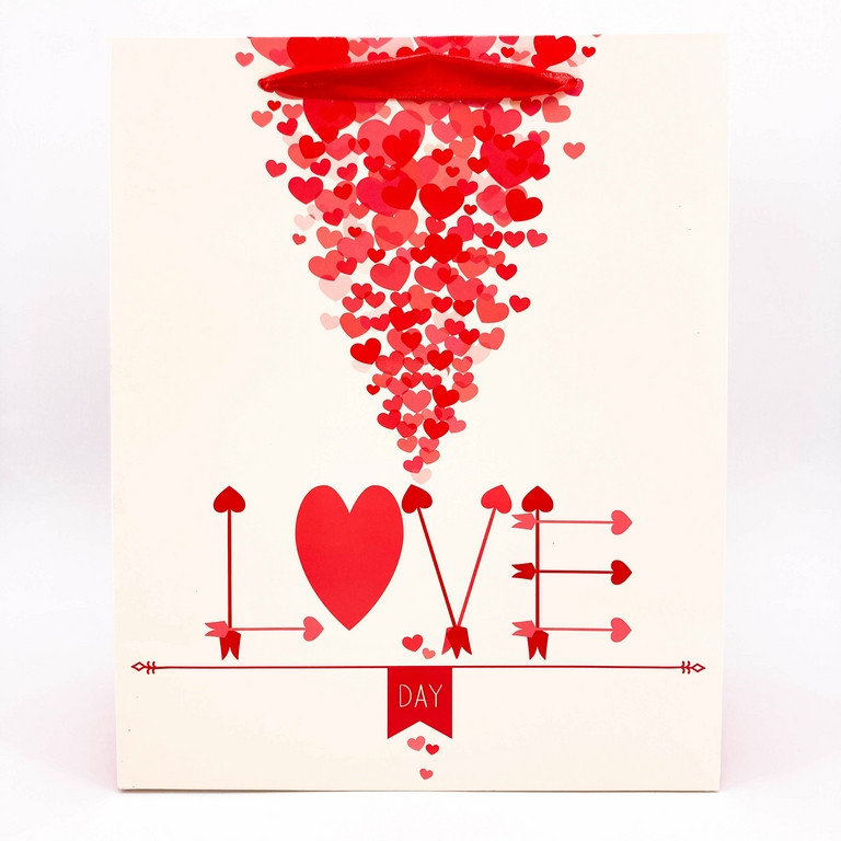 Ajándék tasak krém/piros szívek