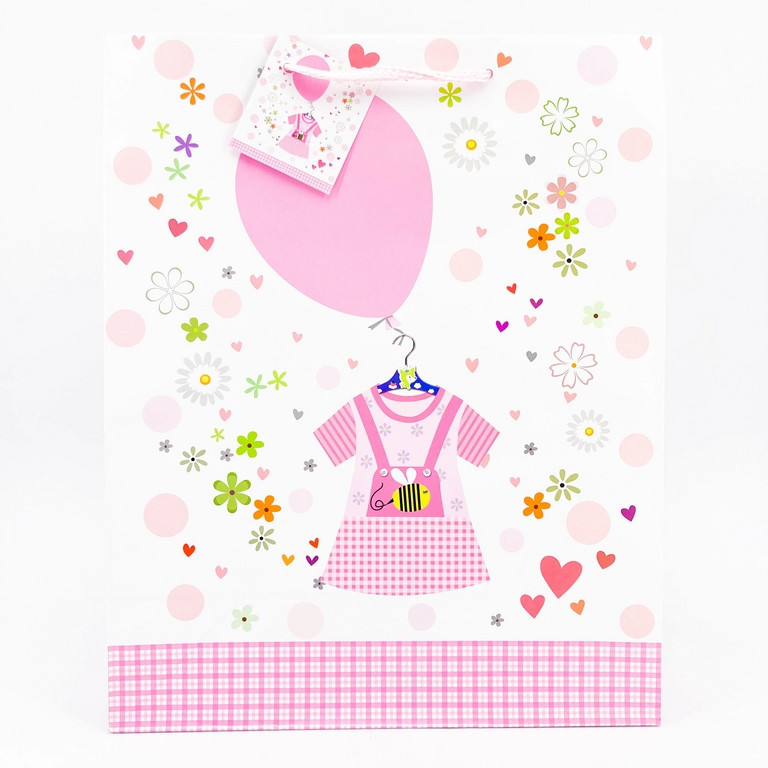 Ajándék tasak rózsaszín ruci+ lufi 26x32cm
