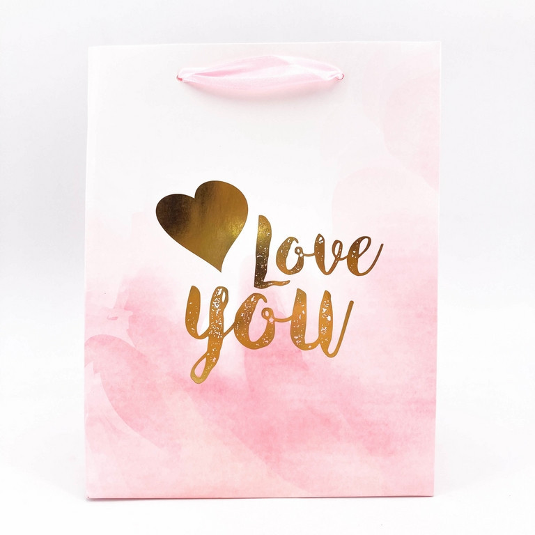 Ajándéktasak rózsaszín/arany LOVE 18x23cm