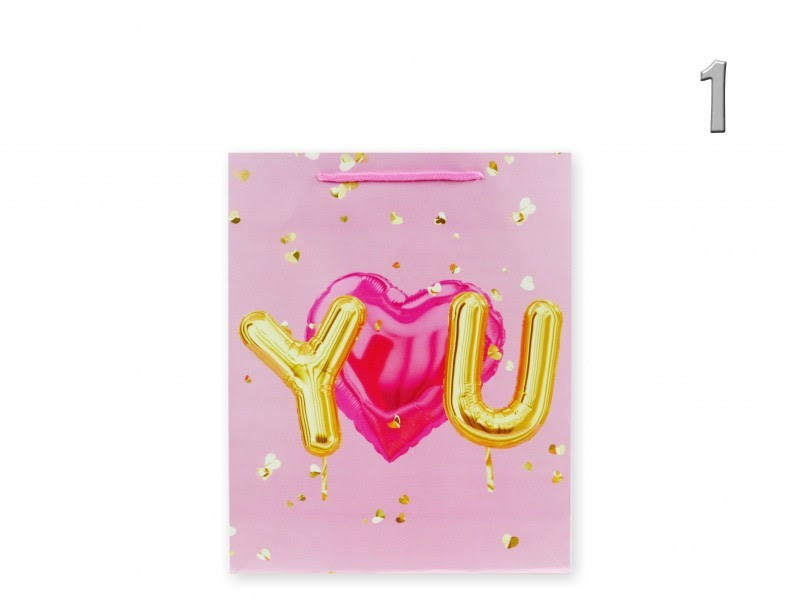 Ajándéktasak  szíves lufis 18x9x24cm -rózsaszín YOU