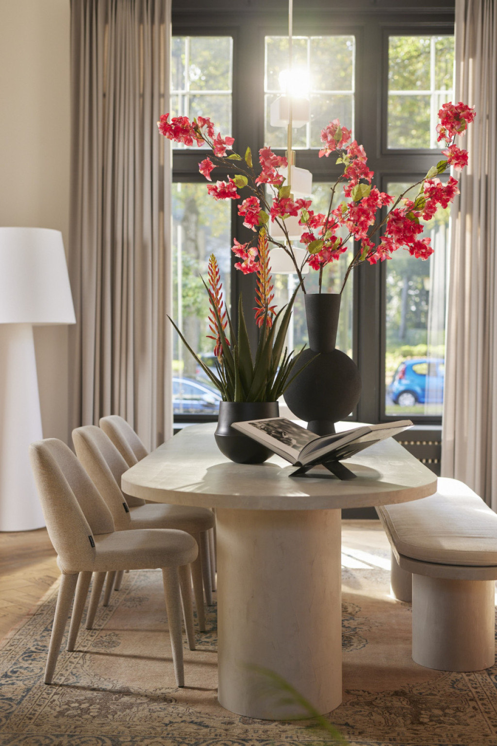 Egyedi látványt kínál ez a 2 virágos, 80 cm magas Aloe Vera műnövény, mely narancsszínű virágokkal és élethű gumi levelekkel hódít. A valódi növény formáját követő kialakítás miatt akár közelről nézve is valódinak tűnik! Ideális választás wellness központokba, irodai recepciókra vagy modern otthonokba, ahol a stílus és a kényelem is számít. Nem igényel öntözést vagy napfényt, és pormentes kialakítása miatt takarítása is egyszerű. A narancsszínű virágfejek vibrálóan emelik ki a növény karakterét – ajánlott fehér vagy natúr kaspóval kiemelni a hatást.