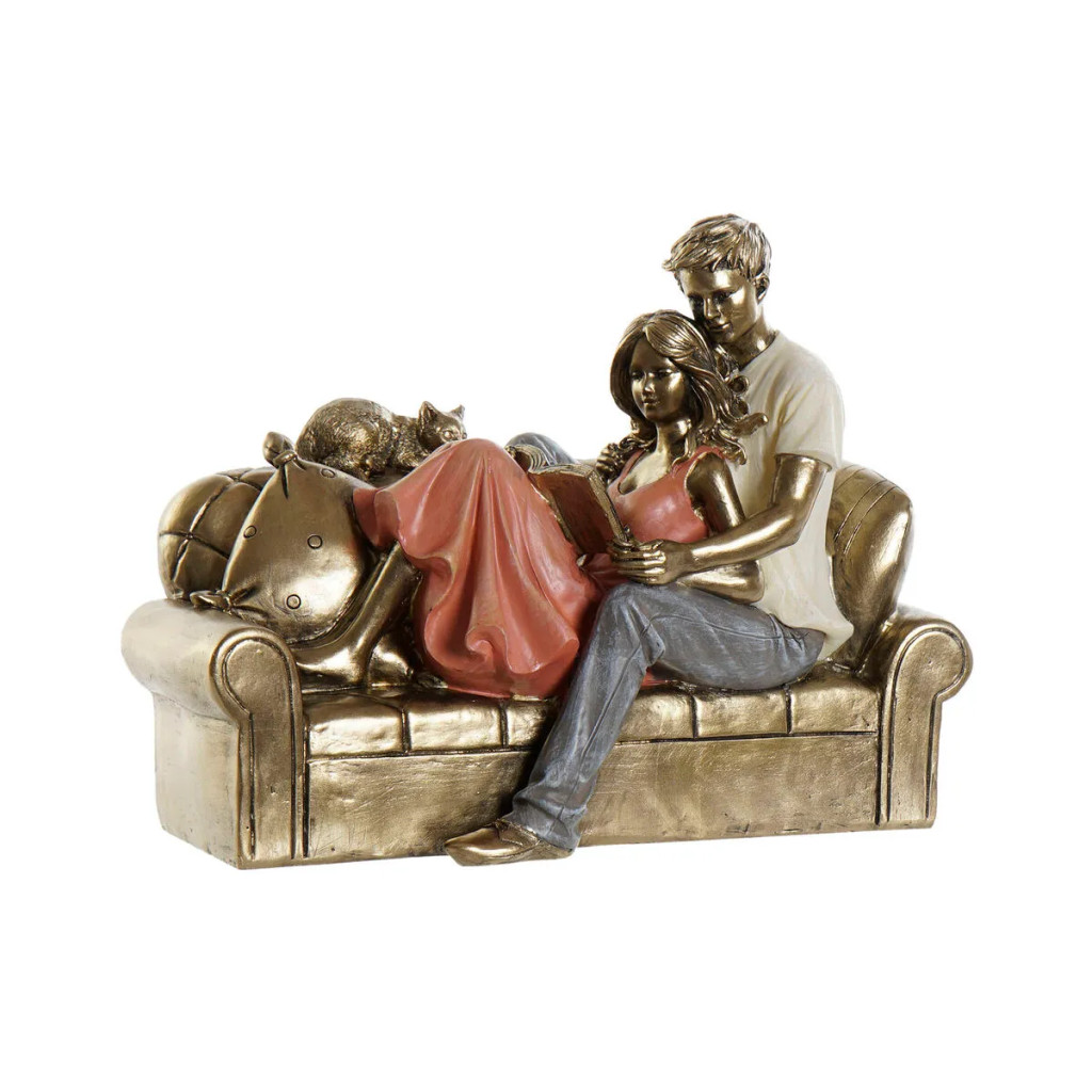 Aranyozott pár szofán cicával 22x11x16,5cm