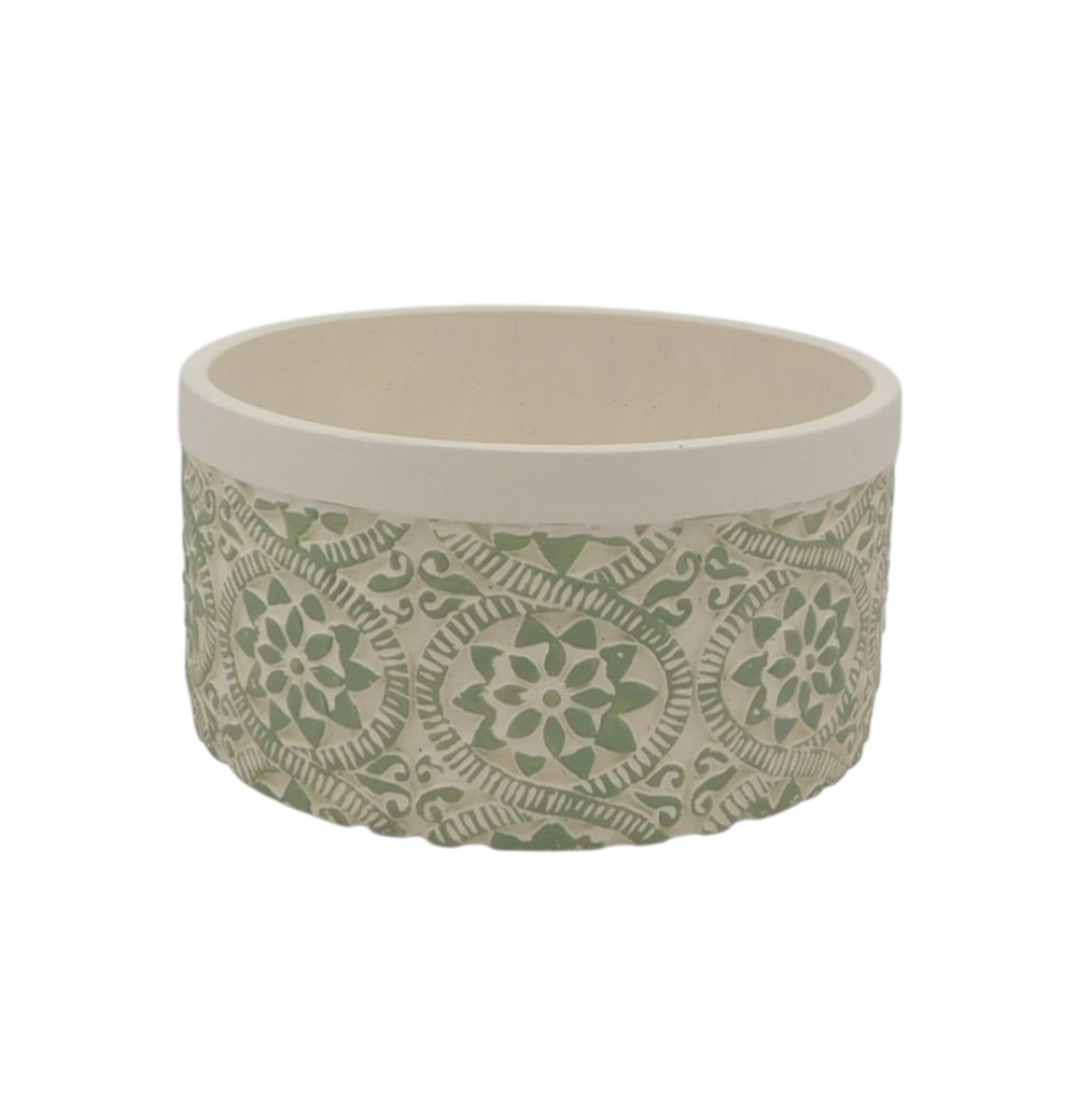 Beton kaspó tál zöld virágos 17x9cm: tökéletes virágtartó kaspó kreatív elrendezésekhez.
