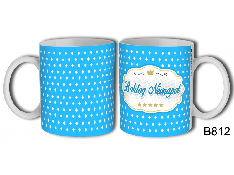 Bögre 3dl-Boldog névnapot kék pöttyös névnapra ajándék