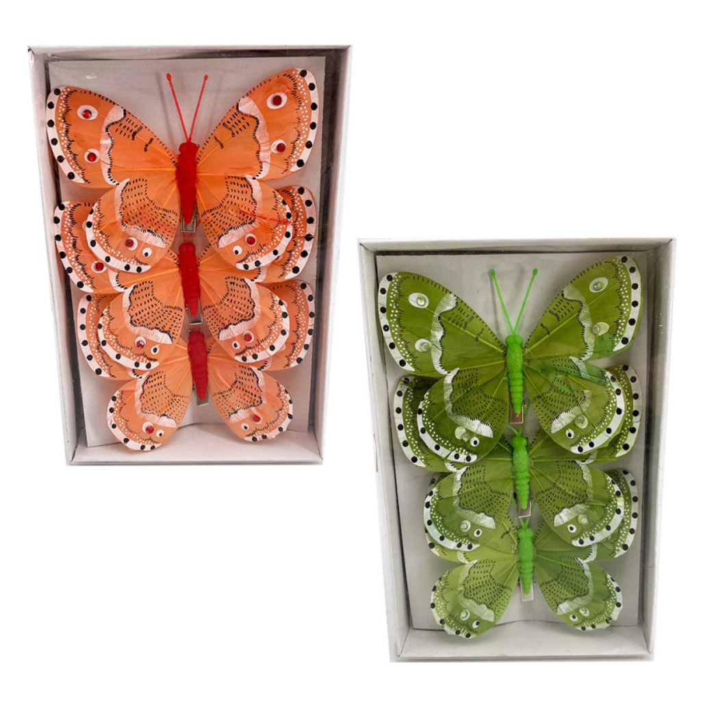 Csipeszes pillangó lazac, zöld színben 3db-os 12x9 cm
