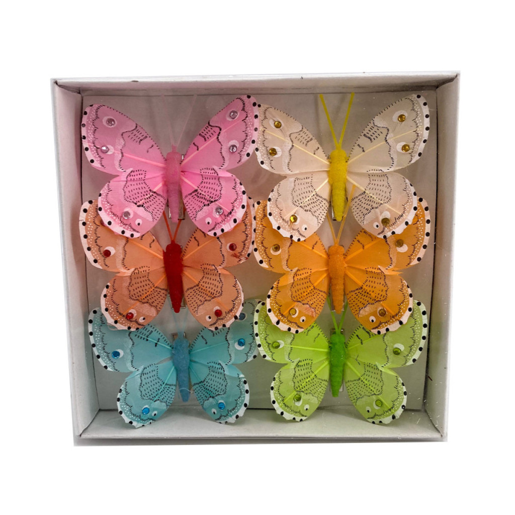 Csipeszes pillangó,strasszos 6db-os 7x6 cm