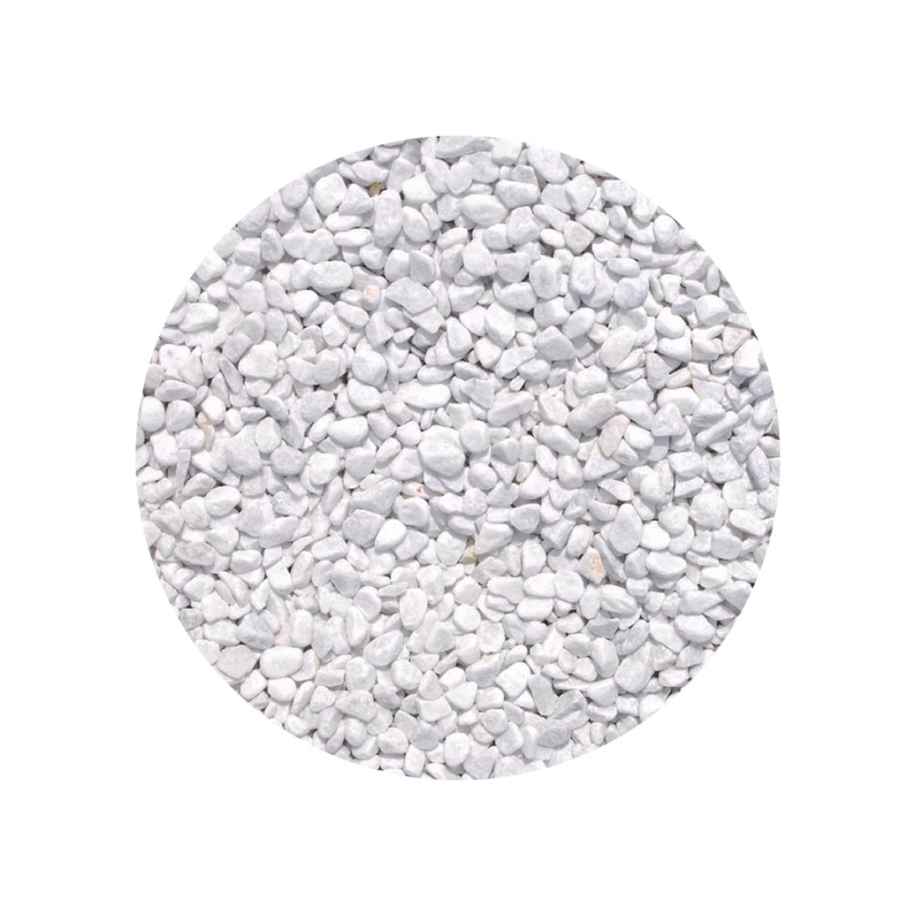 Apró szemű, 6–10 mm-es fehér dekorkő 0,5 kg-os kiszerelésben, virág- és lakásdekorációhoz.