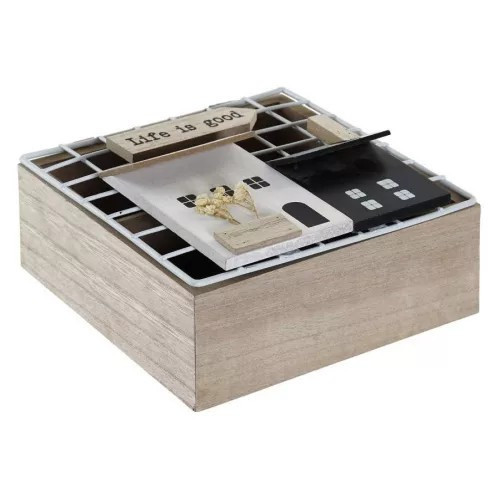 Doboz teás fa fém 16x16x9cm Házak természetes