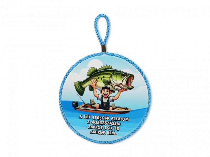 Horgász mintás edényalátét 17x19 cm méretben, praktikus és dekoratív kiegészítő konyhába vagy ajándéknak.
