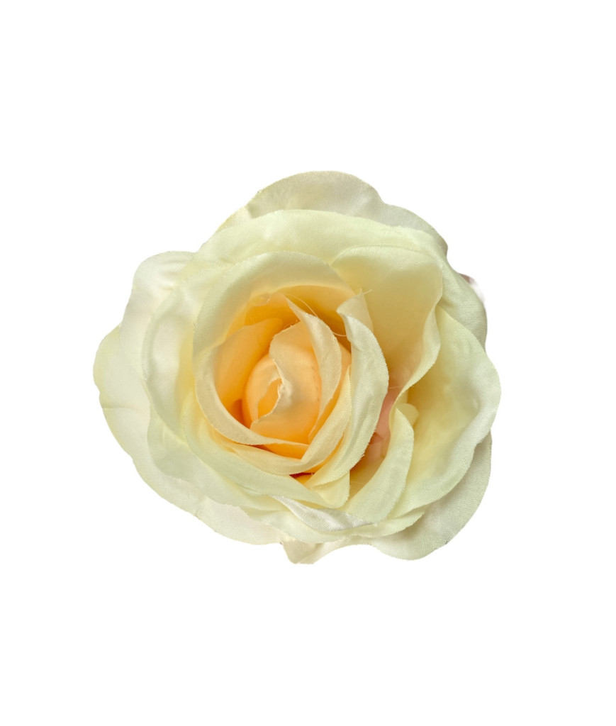 Élethű selyem nyílott rózsafej krém-barack 8 cm: időtálló selyemvirág, amely bármely tér dísze lehet.