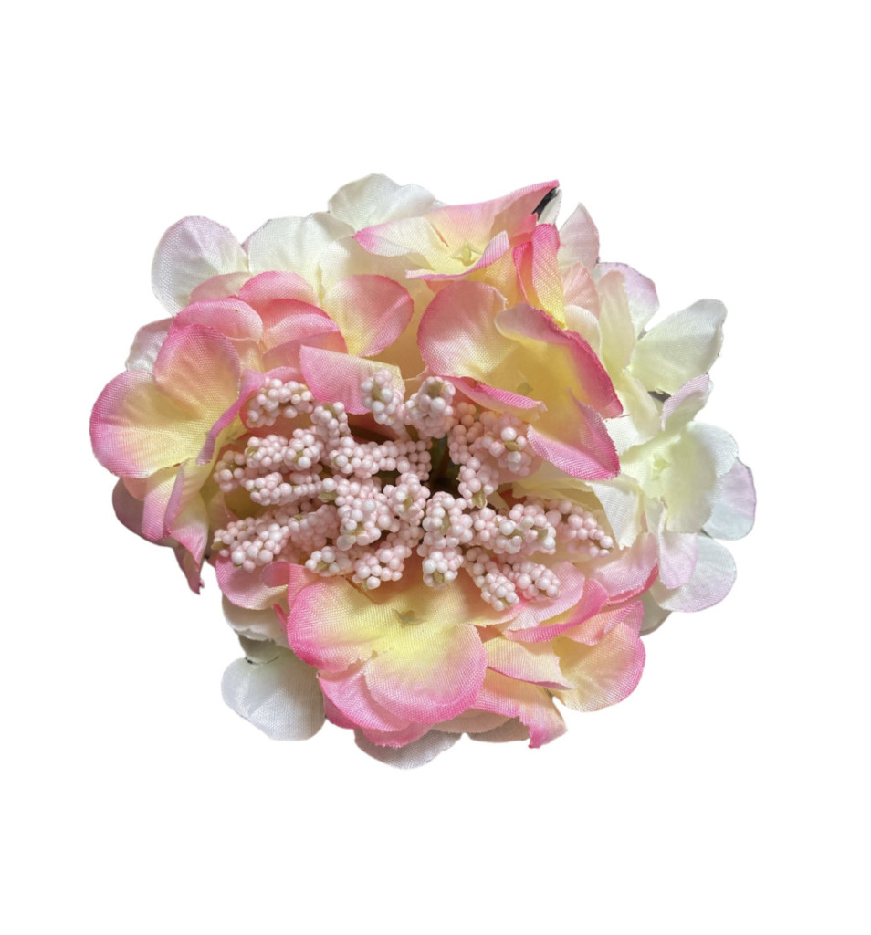 Élethű selyemvirág hortenzia fej bogyós krémes rózsaszín 13cm
