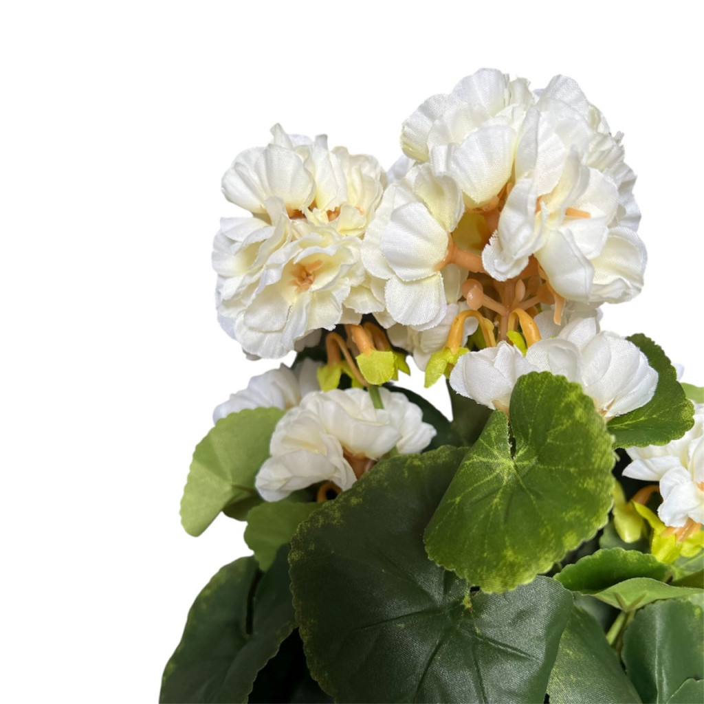 Ez az élethű selyem muskátli csokor a klasszikus virágdekoráció letisztult, elegáns változata. Az élénk fehér virágok finom, természetes hatást keltenek, amelyet a gazdag, sötétzöld levelek tesznek teljessé. Az összhatás friss, harmonikus és időtálló, így könnyedén illeszkedik modern és hagyományos környezetbe egyaránt. A 35 cm-es méret ideálissá teszi kisebb kaspókba, balkonládákba vagy akár asztali dekorációként is. Világos színének köszönhetően különösen jól mutat sötétebb környezetben, illetve más színű virágokkal kombinálva is látványos összképet ad. A tartós kialakítás biztosítja, hogy a csokor hosszú ideig megőrzi formáját és színét, nem igényel öntözést vagy napfényt. Egész évben friss megjelenést biztosít, így praktikus választás otthoni és üzleti dekorációhoz is. Több csokor együttes használatával könnyedén kialakítható egy dús, természetes hatású összeállítás, amely még inkább kiemeli a tér eleganciáját.