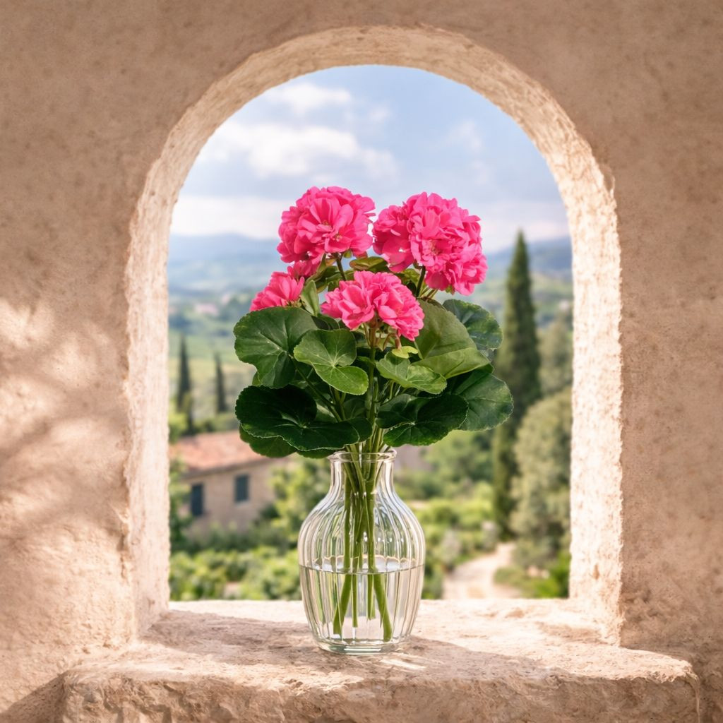 Élénk rózsaszín muskátli csokor, amely lágy, romantikus hangulatot visz erkélyre, ablakba vagy beltéri dekorációba, teljesen gondozásmentesen.