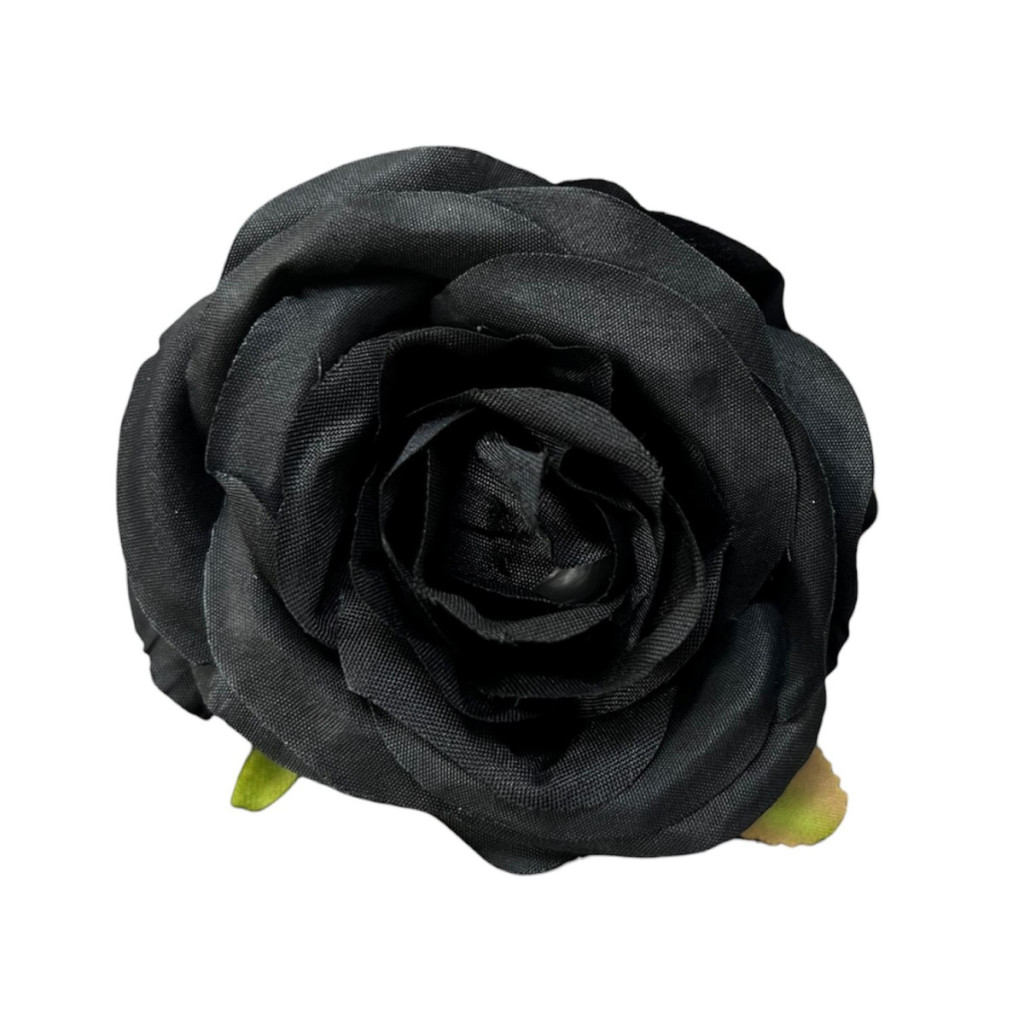 Élethű selyemvirág rózsa fej fekete 7 cm