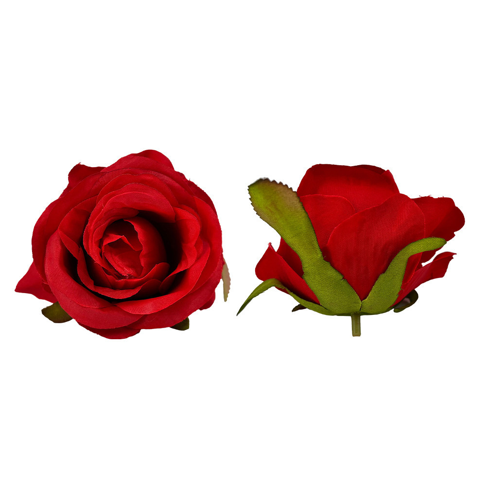 Élethű selyemvirág rózsa fej piros 7 cm: friss hangulatot árasztó virágdísz természetes megjelenéssel.