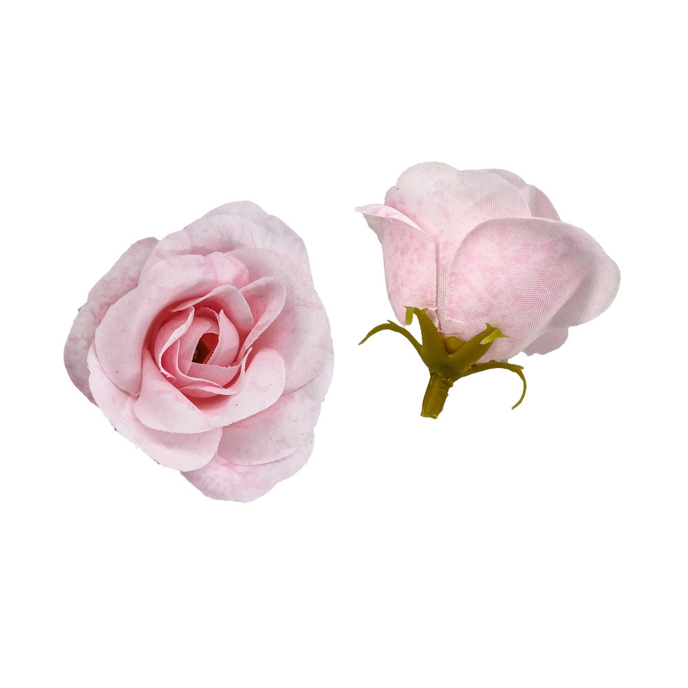 Élethű selyemvirág rózsafej 4 cm halvány rózsaszín