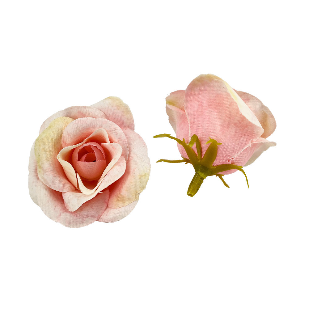 Élethű selyemvirág rózsafej 4cm rózsaszín-krém