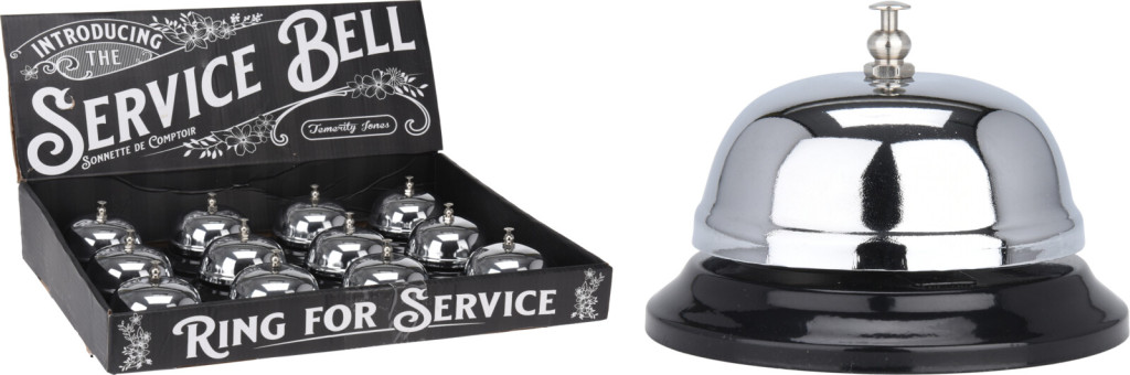 Klasszikus ezüst szervizcsengő 85×60 mm-es méretben, recepciókra, bárokba vagy otthoni használatra.
