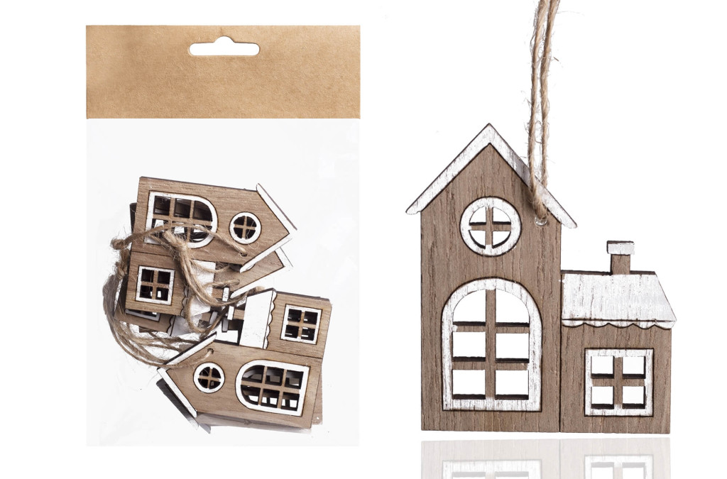 Fa akasztós natúr házikó havas tetővel 6db/cs 5,8x5cm