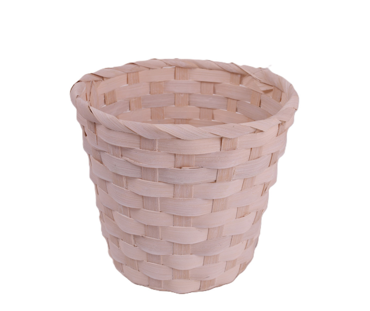 Fonott, fehér színű bambusz kaspó 17 x 15 cm méretben, természetes stílusú növénytartó.