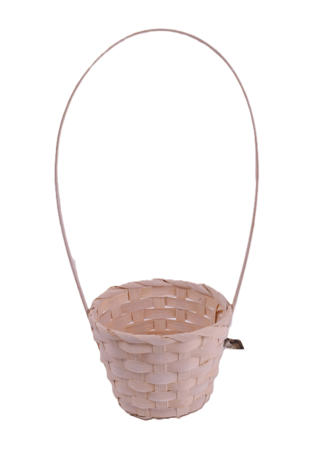 Fonott, fehér színű bambusz kaspó magas füllel, 13 x 34 cm méretben dekoratív felhasználásra.