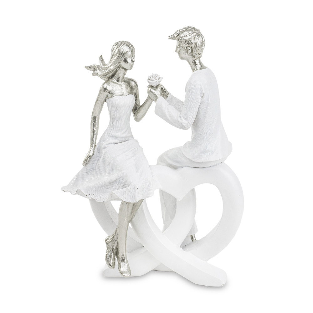 Fehér szíveken ülő pár rózsával  23x16,5x10,5cm