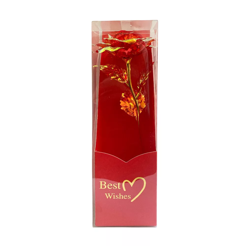 Ez a piros színű fémrózsa dekoratív ajándékdobozban elhelyezve klasszikus és sokoldalú ajándék, amely nem kizárólag romantikus alkalmakra készült. A 24,5 cm-es méret látványos megjelenést biztosít, miközben a részletgazdagon kidolgozott fémrózsa tartós emlékként szolgál. A Best Wishes felirat jókívánságot és pozitív üzenetet közvetít, így ideális választás születésnapra, névnapra, ballagásra, köszönetnyilvánításhoz vagy bármilyen ünnepi alkalomra. A rózsa nem hervad el, hosszú ideig megőrzi esztétikus megjelenését, és dekorációként is elegáns kiegészítője lehet az otthonnak vagy az irodának.