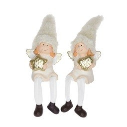 Gyerek lány csillaggal,szívvel lógólábú kerámia 8x6x10,5cm barack,arany