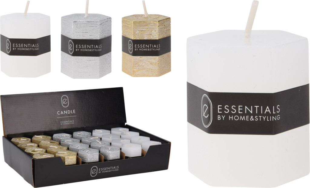 Hexagon alakú oszlop gyertya 4x5cm 3 féle színben