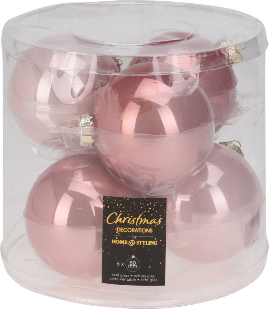 Karácsonyfa dísz fényes  8cm 6db/cs - rózsaszín vegyesen