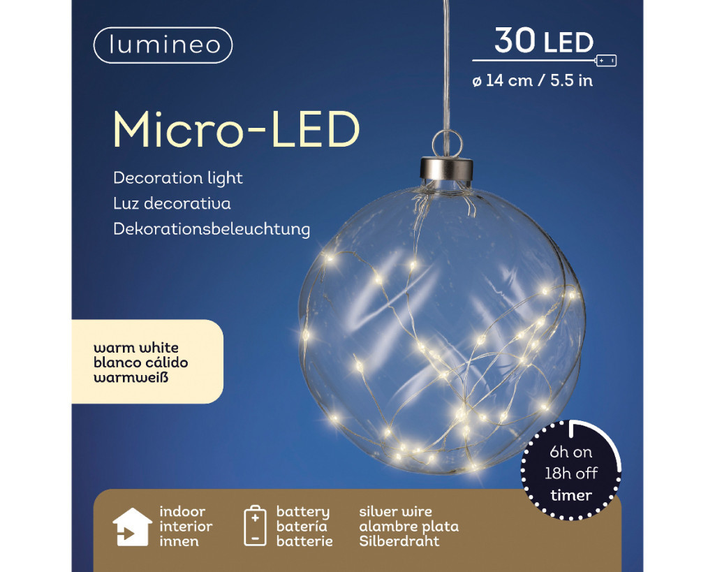Karácsonyi LED-es gömb 14 cm beltéri, meleg fehér