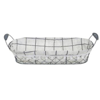Kenyeres kosár fém ,ovál kockás bélés 36x15x8cm