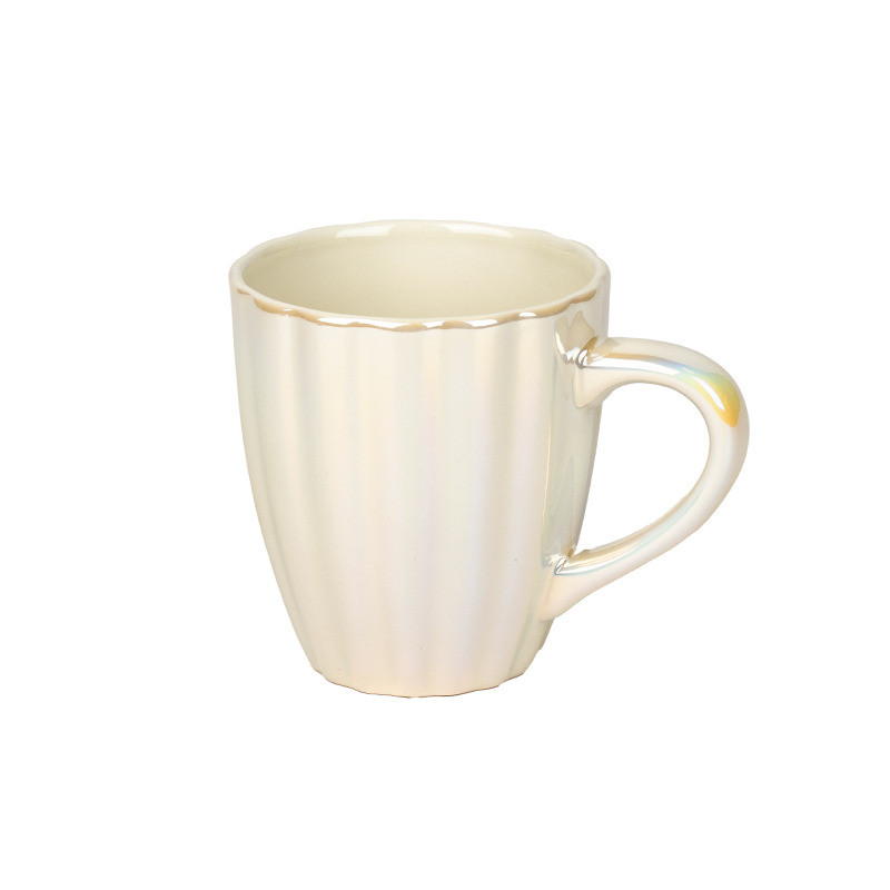 Elegáns gyöngyház fehér kerámia bögre 9×10 cm-es méretben, modern bordázott kialakítással.