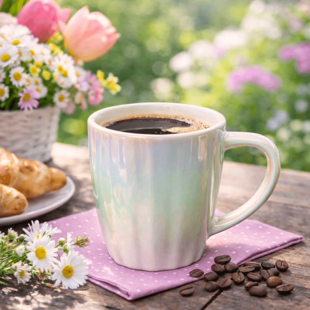 A kerámia bögre gyöngyház fehér színben finoman irizáló fényével és modern bordázott formájával stílusos kiegészítője a mindennapi kávézásnak vagy teázásnak. Tartós kerámiából készült, amely stabil és kényelmes fogást biztosít, miközben a 9×10 cm-es méret ideális űrtartalmat kínál kedvenc forró italaidhoz. A gyöngyház fehér árnyalat letisztult, elegáns hangulatot teremt otthonban, irodában vagy ünnepi asztaldekoráció részeként, így praktikum és esztétika tökéletes harmóniáját kínálja.