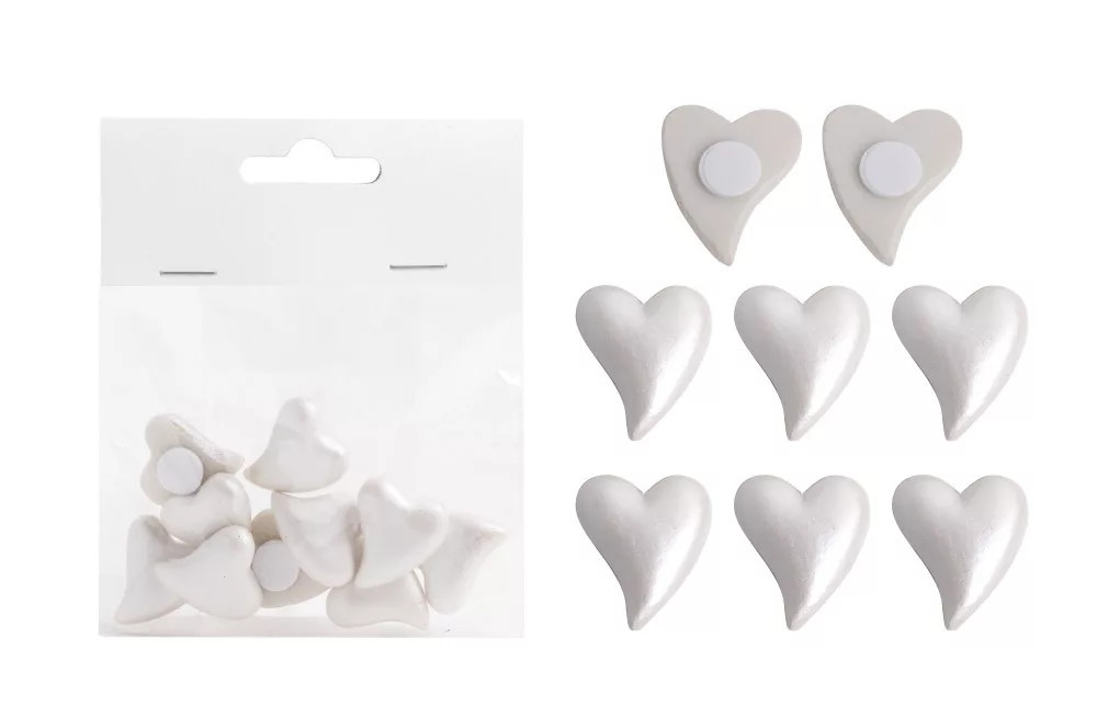 Kerámia szív 8db öntapadós fehér 2,9x0,8cm