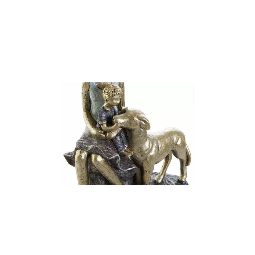 Lány szobor gyerekkel és kutyával kék ruhás 15x9,5x18cm