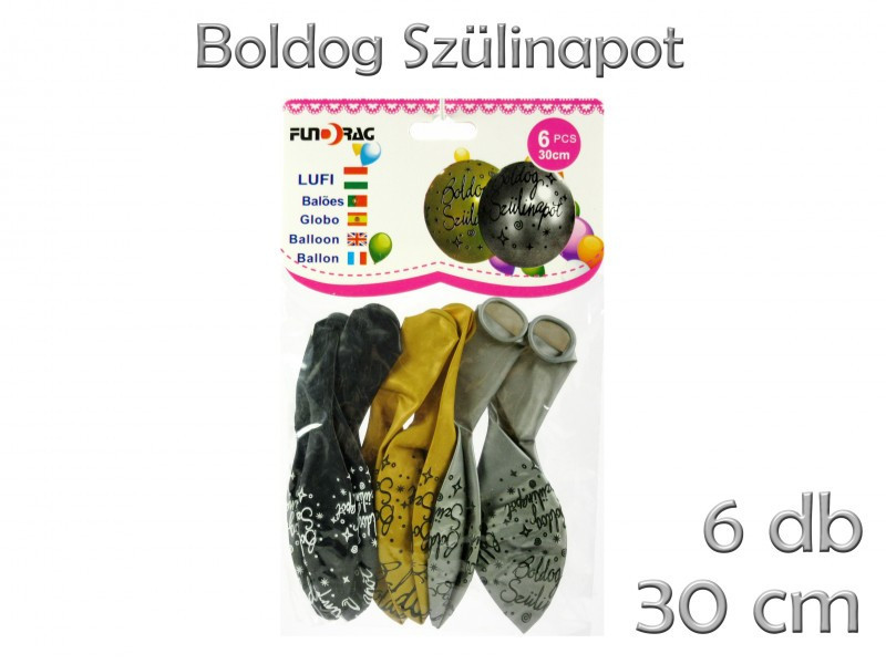 A latex lufi Boldog születésnapot arany-ezüst szett elegáns és különleges dekoráció bármely születésnapi ünnepléshez. A csomagban 6 darab, 30 cm-es latex lufi található, arany, ezüst és fekete színben, amelyek mindegyikét "Boldog születésnapot" felirat és dekoratív minta díszíti. Ezek a stílusos lufik remekül illenek ünnepi asztaldíszekhez, luficsokrokhoz vagy születésnapi háttér dekorációhoz, és emelkedett hangulatot teremtenek a különleges alkalmon. Strapabíró anyaguknak köszönhetően könnyen felfújhatók és tartósak.
