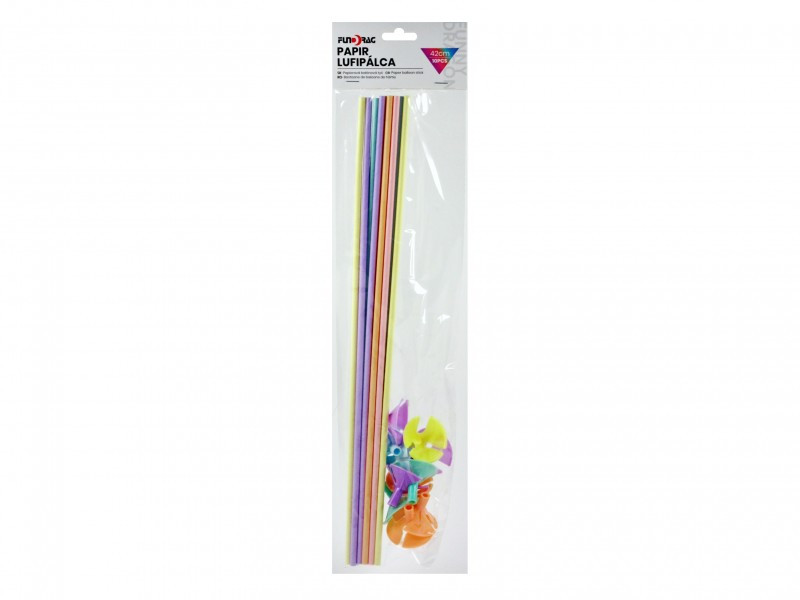 Pasztell színű papír lufipálca csészével, 42 cm hosszúságban. Vidám, színes megjelenés léggömbök rögzítéséhez. A csomag 10 darabot tartalmaz.