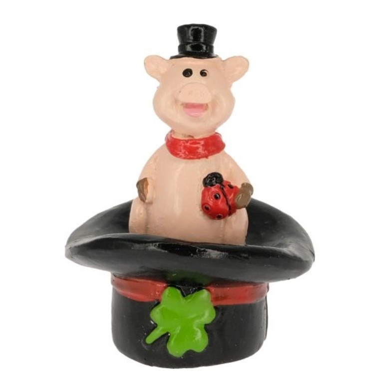Malac lóherével kalapban 4,3x4x5,2cm rózsaszín,fekete