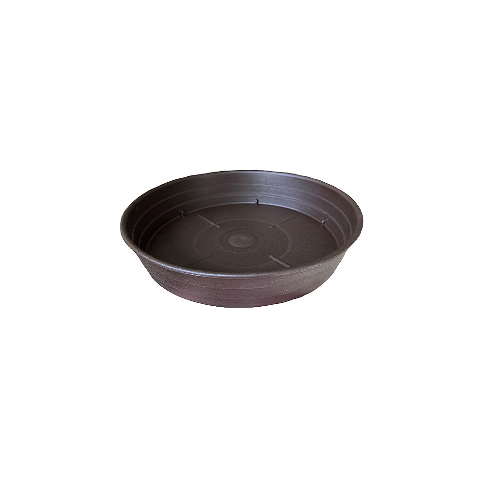 Műanyag alátét kettő csíkkal az oldalán 35cm barna: stílusos megjelenés és praktikus forma virágokhoz, növénykompozíciókhoz.