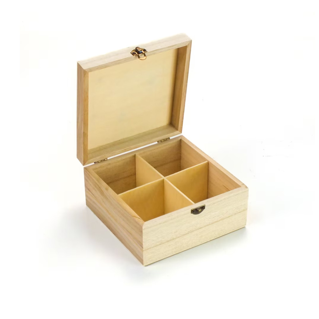 Natúr doboz 4 rekeszes teafilter tartó 15x15x8cm