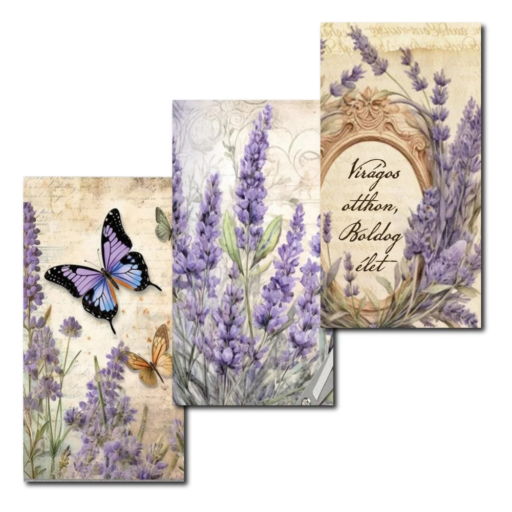 Nyomtatott dekorkarton - Levendulás táblák 3db/csomag