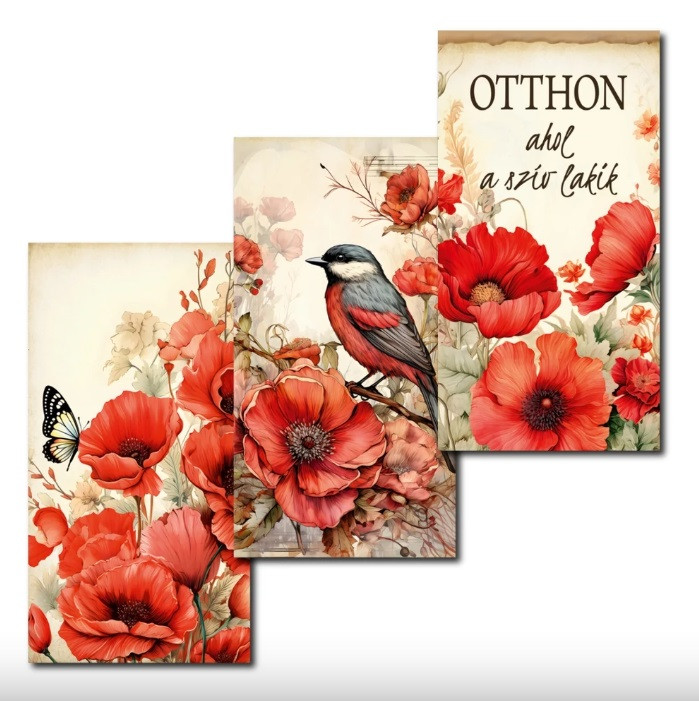 Nyomtatott dekorkarton - Pipacsos táblák 9,5x5cm, 3db/csomag