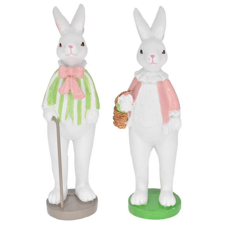 Nyúl bottal kosárral álló  4x4,6x14,1 cm zöld,rózsaszín 2féle