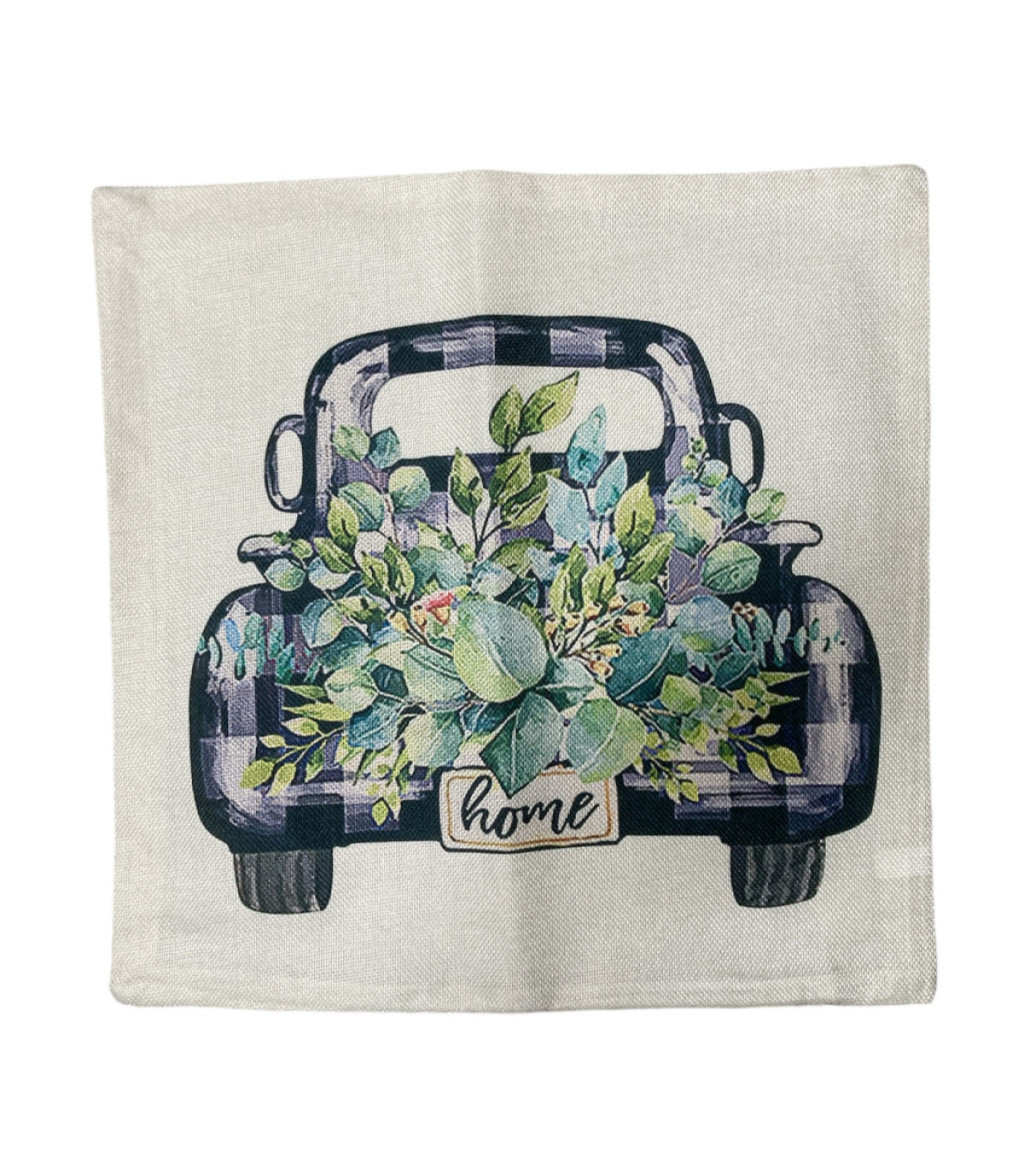 Párnahuzat zsákvászon autós zöld virágos 44 x 44 cm