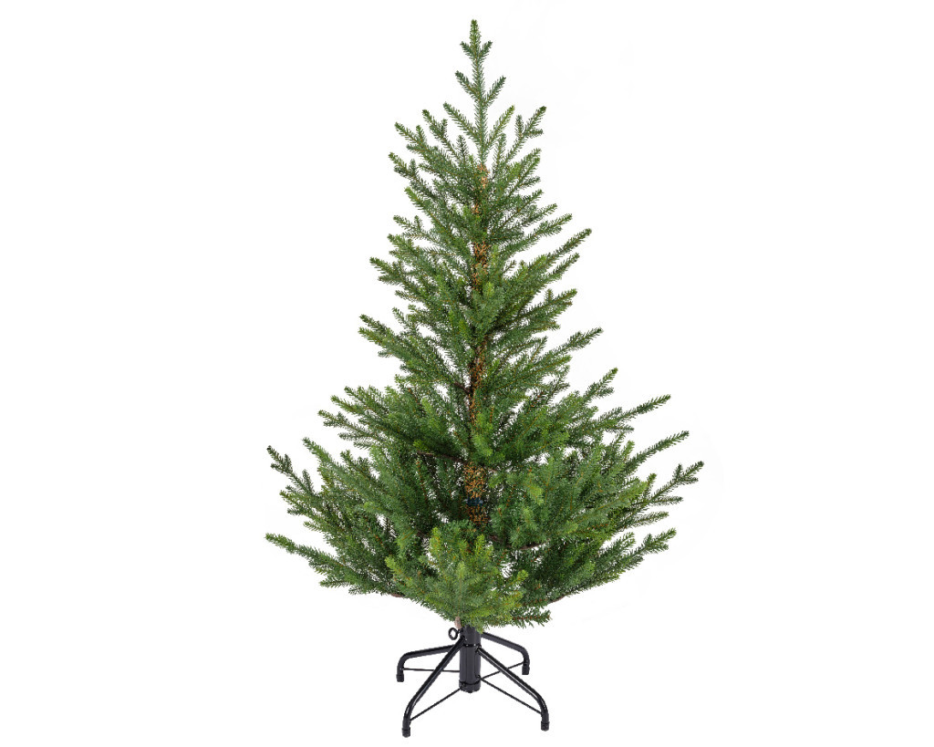 - 1 db 120 cm magas Norvég Luc karácsonyfa, fém talppal és gumilábakkal