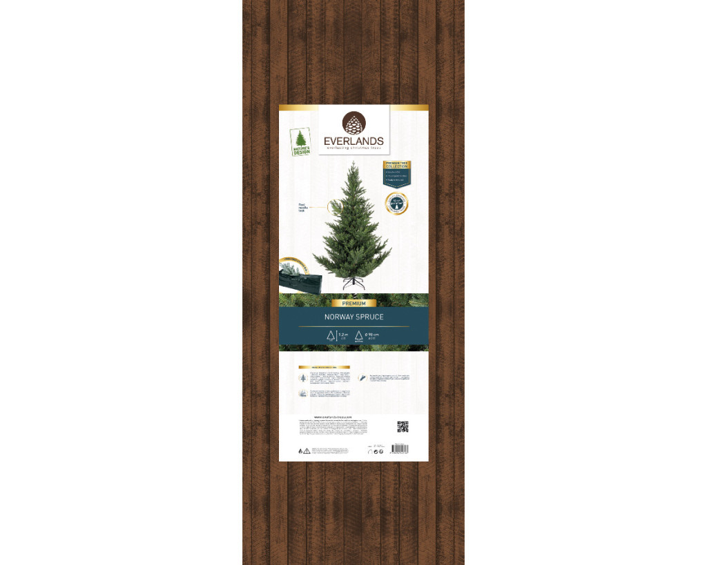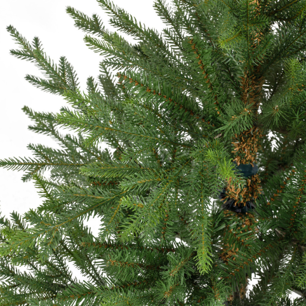 A fa minőségi kartondobozzal érkezik, amely évről évre kiváló tárolást biztosít, és UV-stabil, hogy megőrizze eredeti természetes színezését. A "Valódi tűlevél" formázott végekkel extra valóságot kölcsönöz, így a fa élethű fenyőtűkkel rendelkezik, amelyek az ágak végein találhatók. A fa központja lapos PVC tűkkel van töltve, ami teltebb megjelenést biztosít.