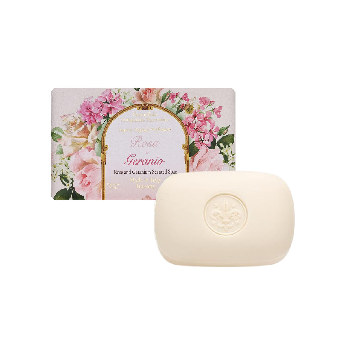 Rózsa és muskátli illatú olasz dekor szappan díszcsomagolásban 200 g