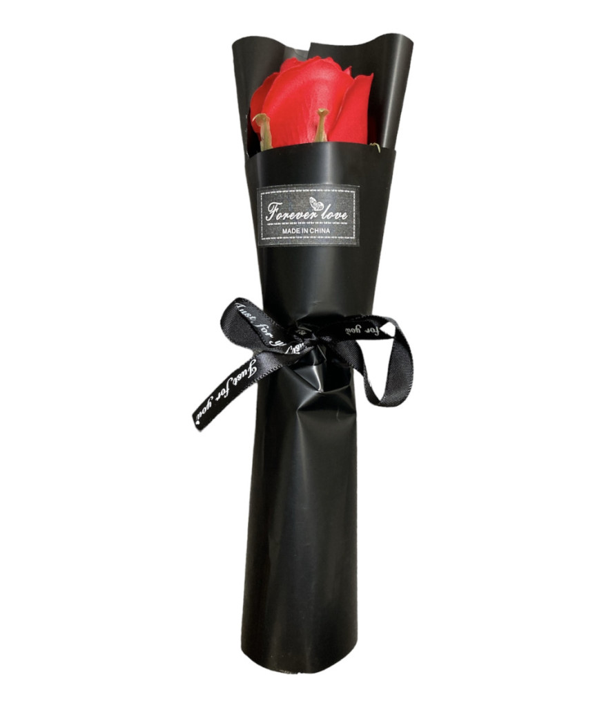 Ragyogó és elegáns megjelenés – Szappanrózsa papírban 23x7cm piros bármely alkalmat különlegessé tesz.