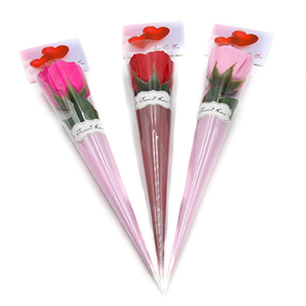 Szappanrózsa papírban szív kártyával 43x7cm piros